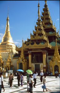 Der Shwedagon Pagode versetzte mich in eine buddhistische, tief religiöse , in sich geschlossene und von der Gegenwart weit entfernte Welt, in der ich mich dann zwei Wochen bewegte. Einige Tage auf dem Inle See liessen tatsächliche alle Welt herum vergessen.  Goldene Pagoden und Tempel, Reste alter birmanischer Königspaläste,  spätmittelalterliches Transportwesen, grosse vergoldete Buddha Figuren, grüne Hügel und Reisfelder bestimmten das Bild.  Tiefgläubige Menschen führten ein einfaches Leben im Einklang mit der alles bestimmenden buddhistische Religion .